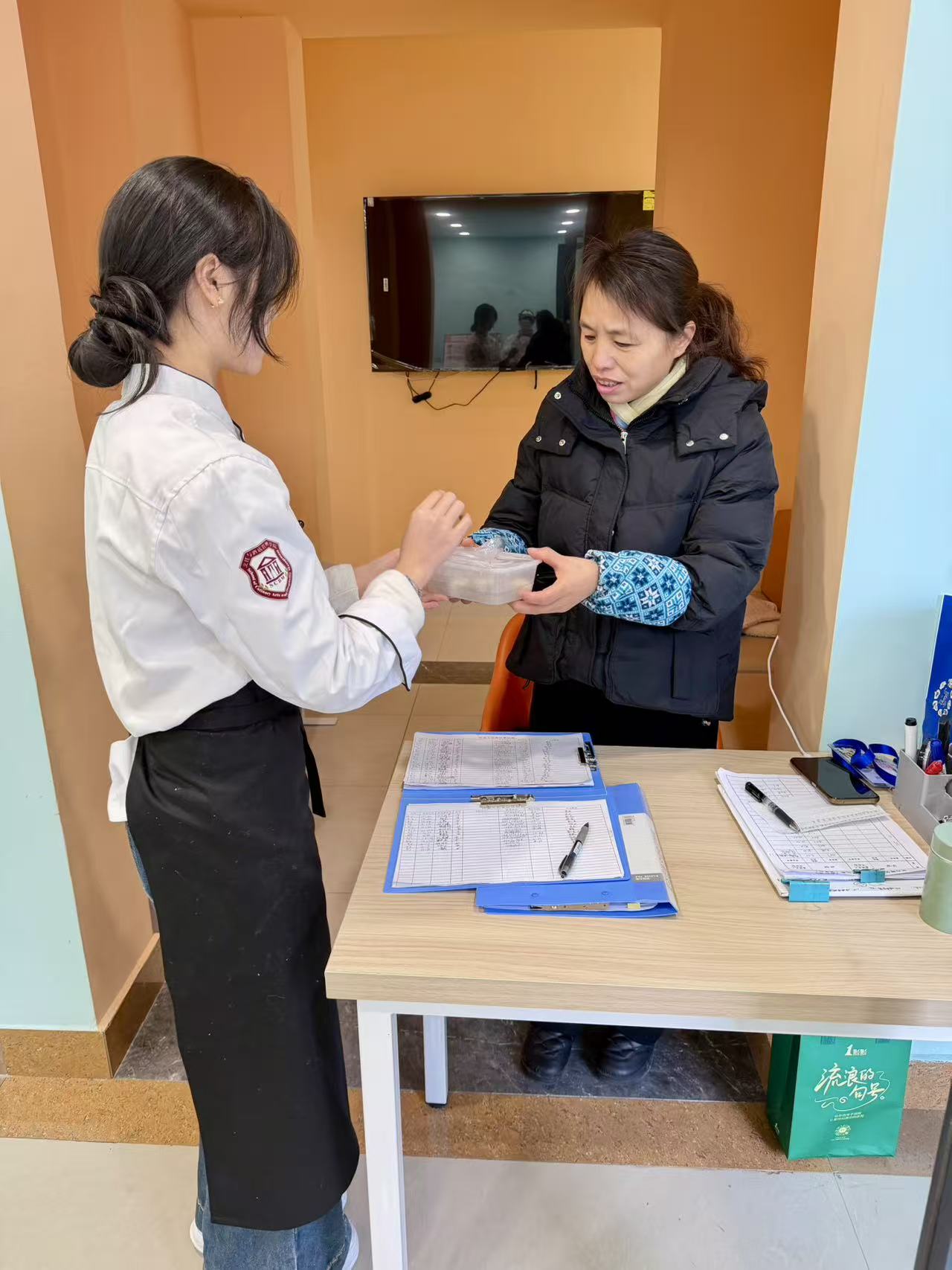 热气腾腾的元宵新鲜出锅,软糯香甜、唇齿留香。同学们围坐在一起,品尝自己亲手制作的元宵,分享劳动喜悦,感受校园大家庭的温暖。活动最后,全体师生合影留念,用镜头定格温馨美好的元宵时刻。随后在老师带领下,烹饪学子将分装好的元宵送到保安叔叔和宿管阿姨手中,用一句句祝福、一碗碗暖意,践行学院“以技传情、以暖育人”的初心。
