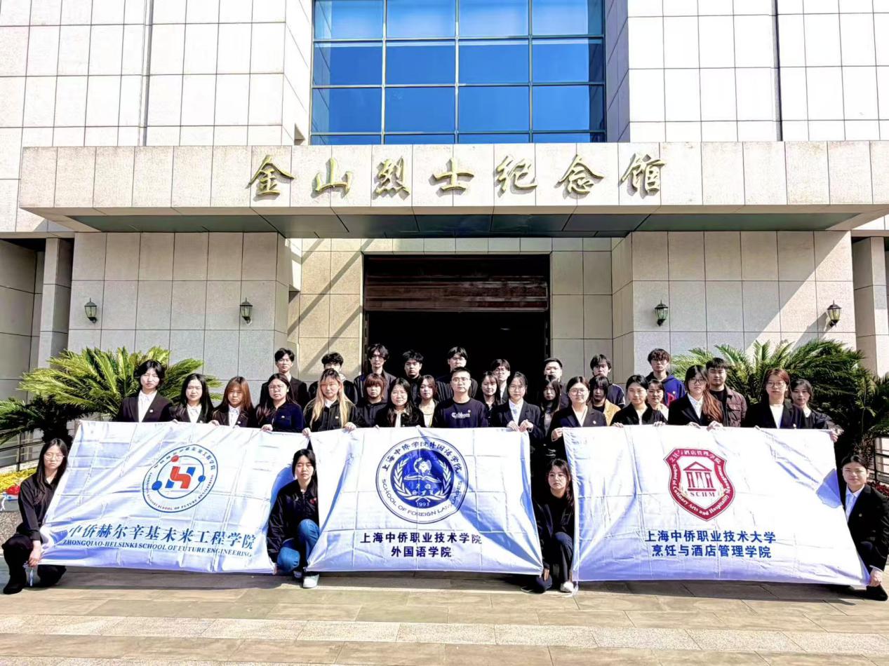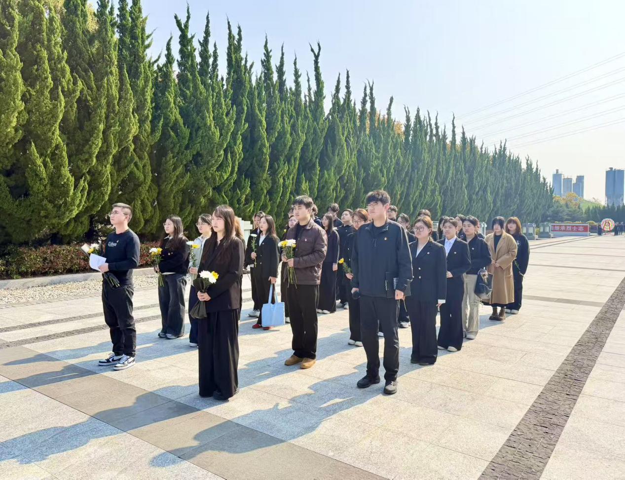 上午,党员教师带领学生代表前往金山区烈士陵园祭扫,全体人员肃立默哀、敬献白菊,缅怀革命先烈,传承红色基因。随后,师生前往金山区抗战遗址参观,党员教师现场讲解抗战历史,引导学子铭记历史、缅怀先烈,将红色精神融入专业学习与日常。